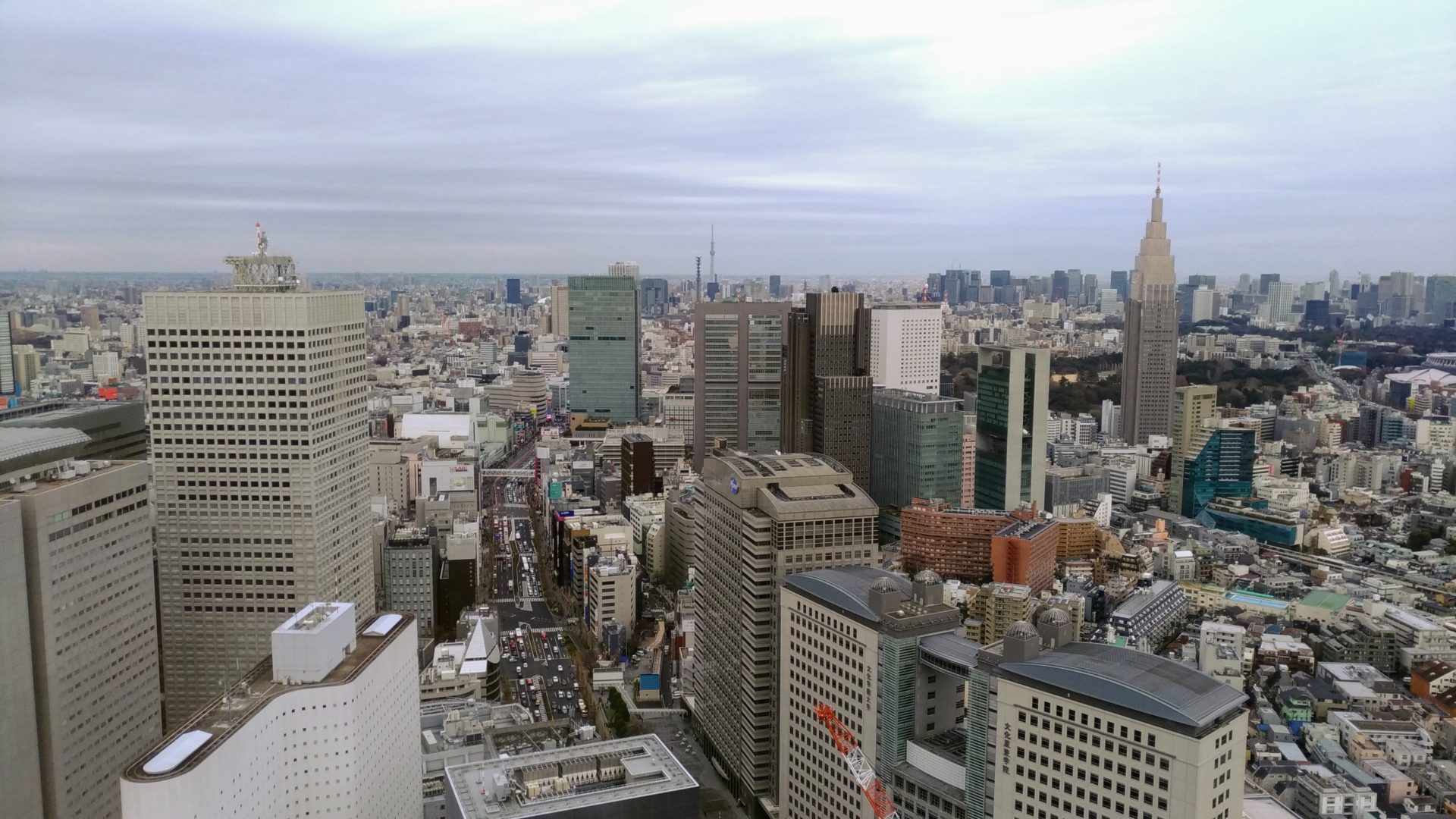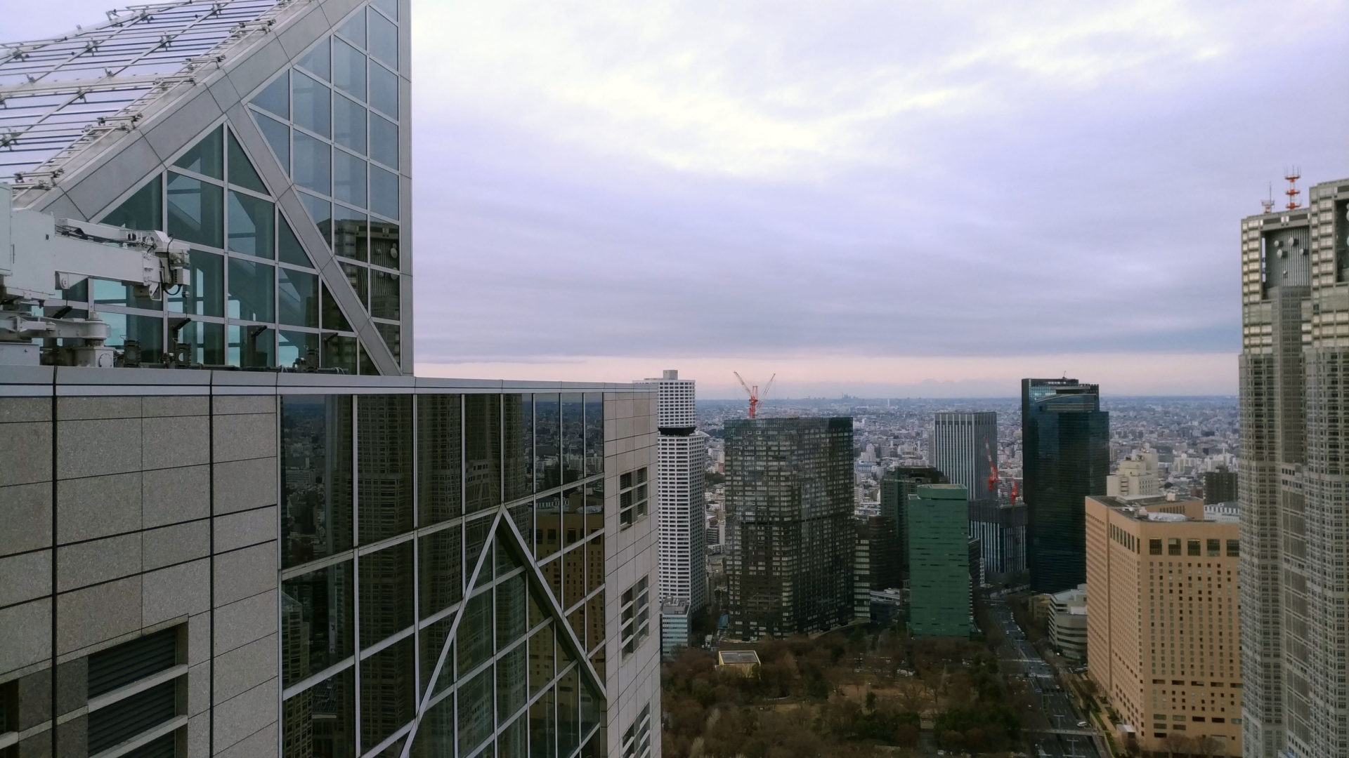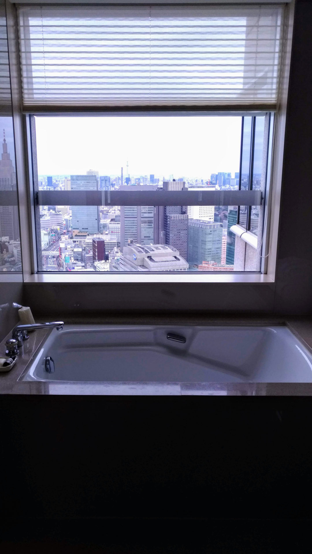景色:窓下に西新宿の高層ビル群。新宿の夜景が一望できる。